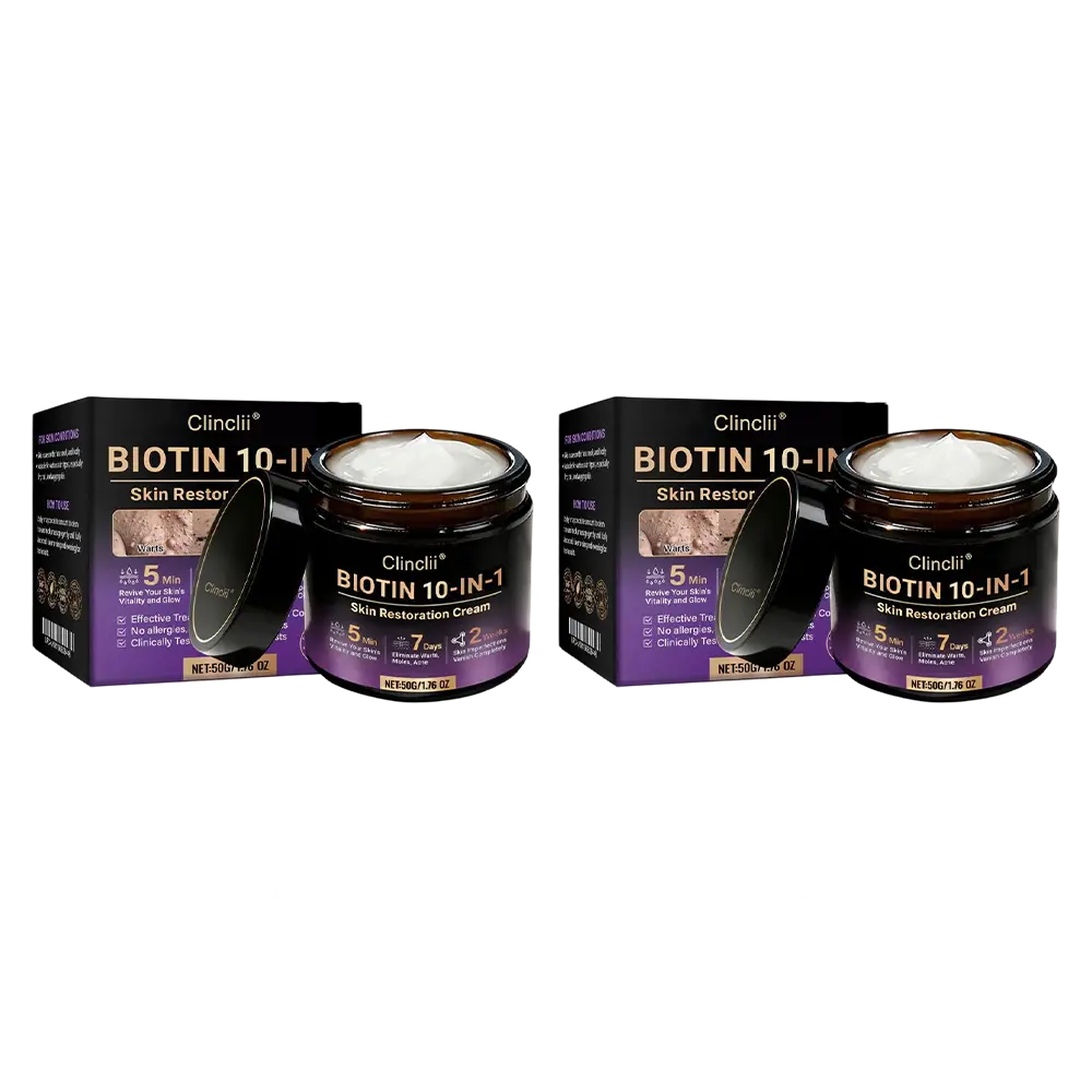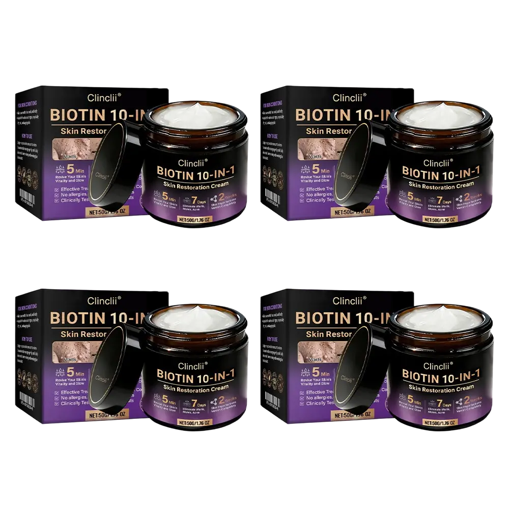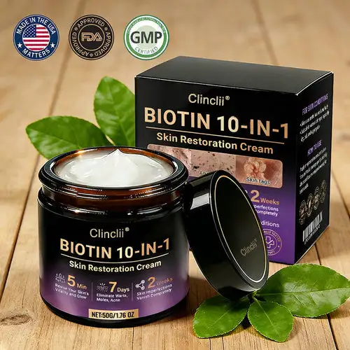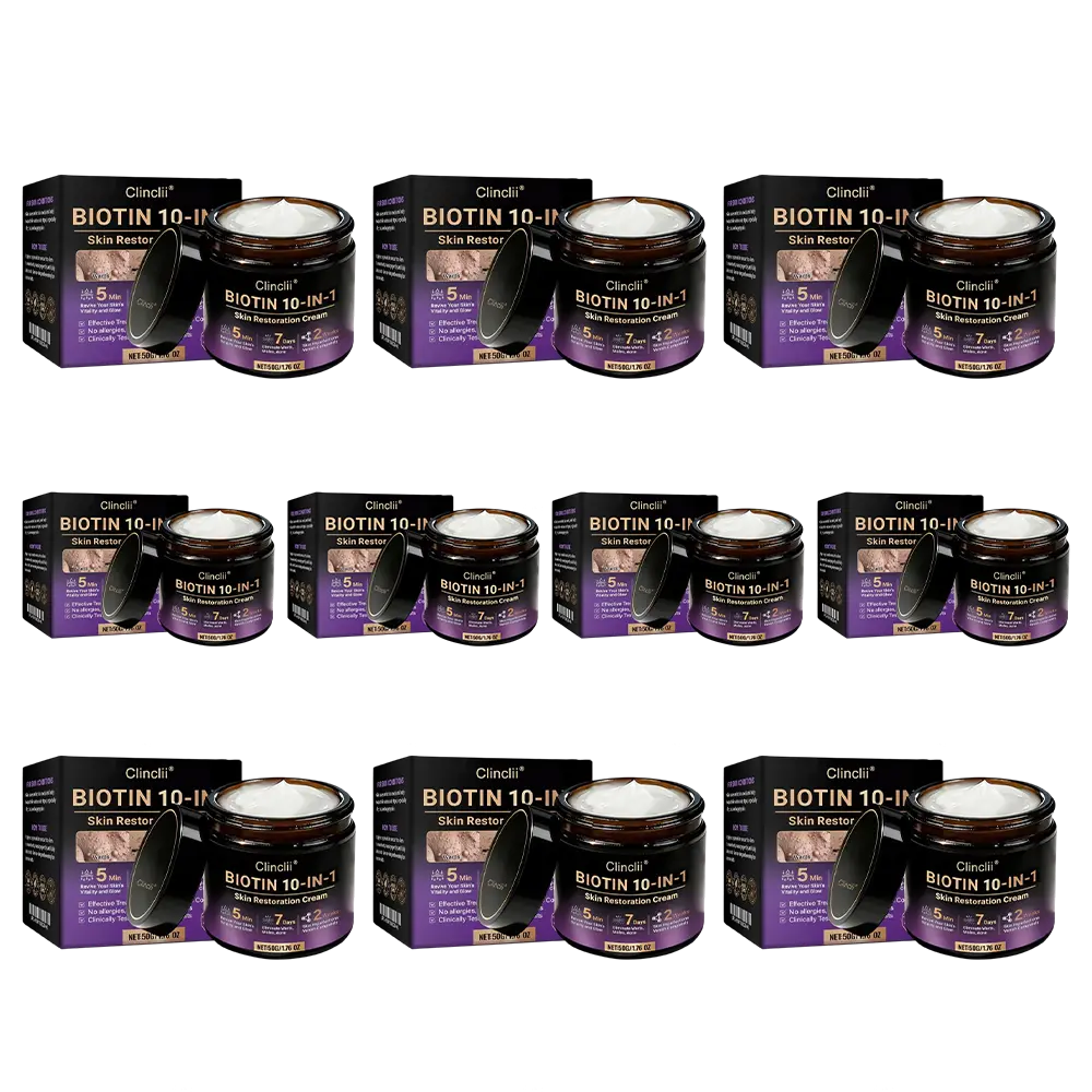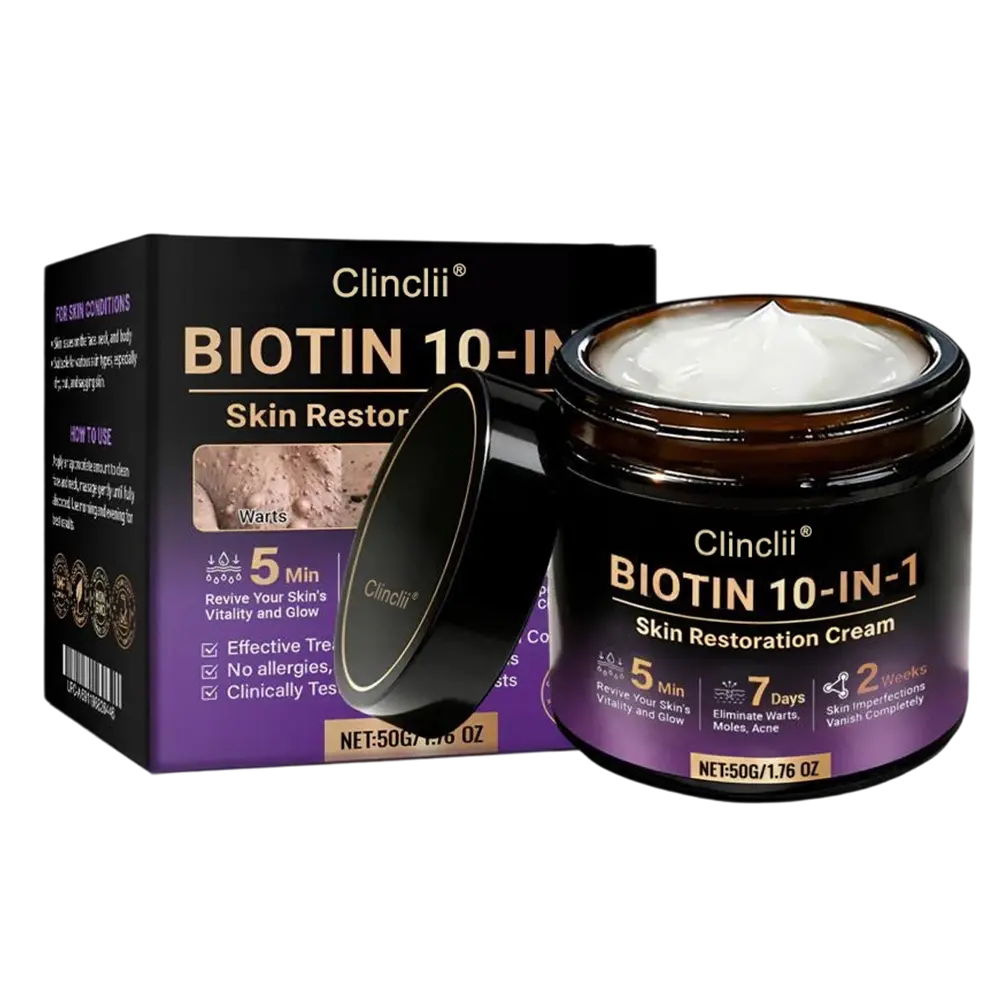 In response. Clinclii® Biotin 10-in-1 Skin Restoration Cream was scientifically developed under rigorous standards. Its formula combines the restorative power of natural biotin and collagen. synergized with hyaluronic acid. vitamin C. centella asiatica. and over ten other potent bioactive ingredients. Together. they deliver multi-dimensional care — from deep hydration and barrier repair to anti-inflammatory relief. itch control. metabolic renewal. tissue restoration. and anti-aging nourishment. Clinically validated and produced in GMP-certified facilities compliant with U.S. and EU safety standards. this cream offers a safe. effective. and drug-free multi-repair skincare solution for dryness. inflammation. irritation. and signs of aging — restoring comfort. resilience. and lasting skin health.