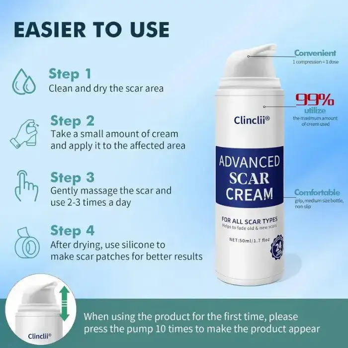 Clinclii® Advanced Scar Gel is infused with high-purity silicone bioactive oil and Micro-Penetration Repair Complex that deeply nourishes, rapidly softens, and smoothes scar tissue.